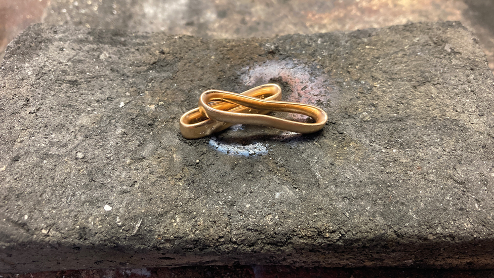 Die feinen Kostbarkeiten, die in der Werkstatt von Juliane Hellmund und ihrem Team entstehen, verkörpern die perfekte Symbiose aus materiellem und ideellem Wert. Mit ihrem Angebot, voll und ganz auf klassische Goldschmiedekunst zu setzen, trifft sie bei den Menschen aus Siegen und der Region auf Begeisterung. Mit dem Wunsch nach einer Arbeit aus ihrer Hand ist ganz oft eine sehr persönliche Geschichte verbunden. „Zwei Schwestern suchten mich auf und hatten die Brosche ihrer verstorbenen Mutter dabei. Daraus sollten – zusammen mit weiterem Material – zwei identische Ketten entstehen. Aus einer gemeinsamen Erinnerung, die fest mit der Mutter verbunden war, weil sie diese Brosche sehr häufig trug, wurde so ein zeitgemäßer Schmuck, der für beide eine Bedeutung hatte“, erläutert Juliane Hellmund. „Gleichzeitig ist so eine Umarbeitung auch sehr nachhaltig, was gerade vielen jungen Leuten wichtig ist.“ Auch im Bereich der Trauringe kommt es vor, dass sich ein Paar alte Familienstücke umarbeiten lässt. „Unsere Kreativität und die Möglichkeiten sind nahezu grenzenlos. Kürzlich kam ein junges Pärchen mit einem Kieselstein zu mir. Den hatten die beiden von einer besonderen Wanderung mitgenommen, im Rahmen derer er ihr den Heiratsantrag machte. Das war eigentlich ein eher unscheinbares Quarzsteinchen, also standen wir durchaus vor einer Herausforderung. Doch am Ende wurde ein wunderschöner Schmuckring daraus.“, so Juliane Hellmund.