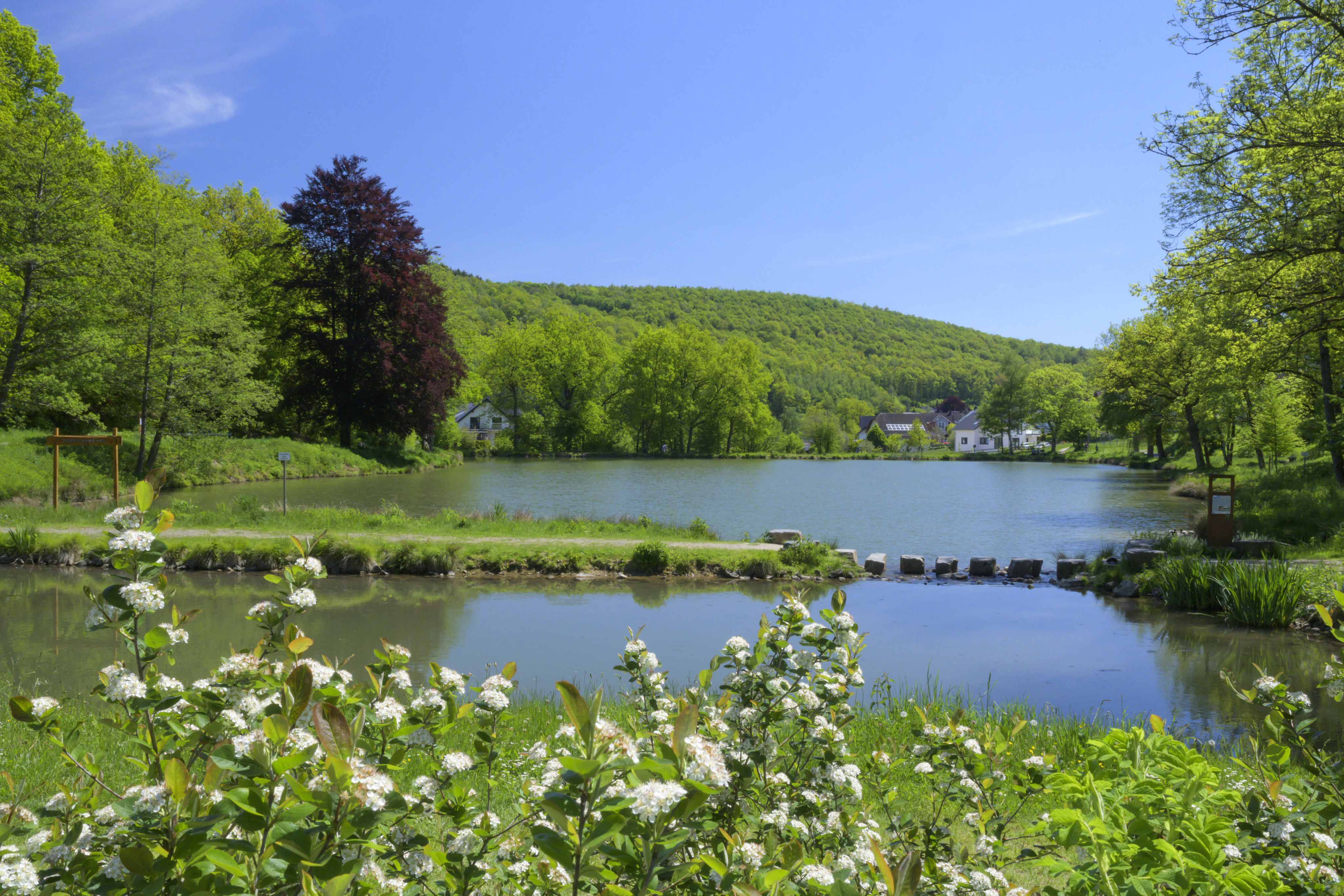 Verweilen, Entspannen und vielleicht ein wenig die Angelrute auswerfen… Dafür bietet sich der Gambachsweiher an. Nördlich der Historischen Altstadt, im Gambachtal gelegen, wurde er bereits 1611 zum ersten Mal urkundlich erwähnt. Neben seinem Erholungswert hat er für die Menschen aus Freudenberg noch eine besondere Bedeutung. Nebenbei dokumentiert er die örtliche Wirtschaftsgeschichte. So lieferte der Weiher dank Wasserkraft die notwendige Energie zum Betrieb der Öl-, Kreise-, Knochen- und Lohmühlen. Auch der Betrieb der zahlreichen Hammerwerke, die bis Mitte des 19. Jahrhunderts den berühmten Freudenberger Stahl erzeugten, wurde durch die Wasserkraft ermöglicht. Der Weiher ist bis heute historischer Bestandteil Freudenbergs und steht unter Denkmalschutz.