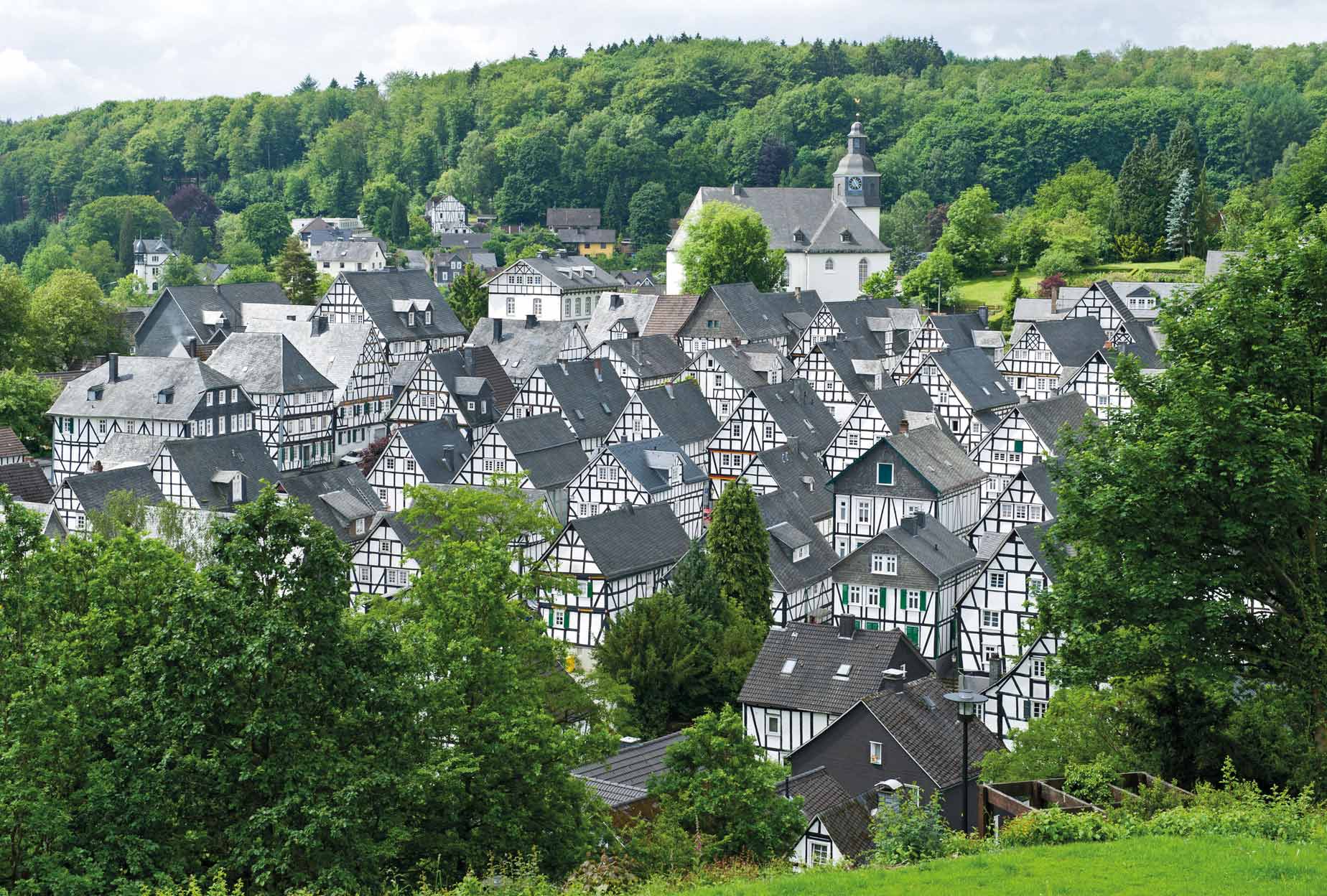 Mit seiner weltbekannten Giebelparade ist Freudenberg einzigartig. Wie eine Stadt aus dem Bilderbuch oder wie etwas, was ein Kind vor sich auf dem Teppich mit Bauklötzen vor sich hingestellt hat, wirkt das beliebte Fotomotiv. Laut der Verleihungsurkunde der Stadtrechte aus dem Jahr 1456 wurde Freudenberg als „Flecken“ gründet. Daher stammt der Name für den historischen Stadtkern. Nachdem 1540 ein Brand die Burg und die Burgmannssiedlung zerstört hatte, wurden die Burgmannshäuser außerhalb des Rings in gerade Straßen und ebendieser Anordnung aufgebaut. In ähnlicher Form wiederholte sich das noch einmal bei einem weiteren Brand 1666. Hier orientierte man sich an den alten Grundrissen, lediglich die Burg wurde nicht wiederaufgebaut. Unter www.freudenberg-wirkt.de finden sich Termine für Stadtführungen, außerdem können hier auch Gruppentouren gebucht werden.