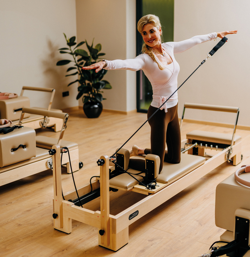 Expertin Kirsten Reska ist seit über zwei Jahrzehnten in der Fitness- und Gesundheitsbranche verwurzelt. Bewegungstherapie, Fitness, Yoga und Pilates verbindet sie zu einem ganzheitlichen Ansatz. Bereits 2007 hatte sie ihre Pilates-Ausbildung vertieft, als Reformer-Training in Deutschland noch weitgehend ein Nischenthema war. Nachdem sie dann über ihren Partner, Sebastian Hoffmann, den Inhaber des Maxsport, mitbekam, was für eine Erfolgswelle Reformer Pilates in den USA auslöste, entschloss sie sich, diese Art von Training hier in einem optimalen Umfeld selbst anzubieten. Kirsten Reska: „Ich wollte ein Studio schaffen, das die Präzision des Pilates-Trainings mit der emotionalen Qualität eines ‚dritten Ortes‘ verbindet – einen Raum, in dem Menschen auftanken, sich spüren und gleichzeitig effektiv an Haltung, Kraft und Leichtigkeit arbeiten können.“ Unterstützt wird sie von einem Team aus speziell ausgebildeten Reformer-Instruktorinnen, die Pilates seit Jahren leben und ihre Leidenschaft nun in Attendorn weitergeben.